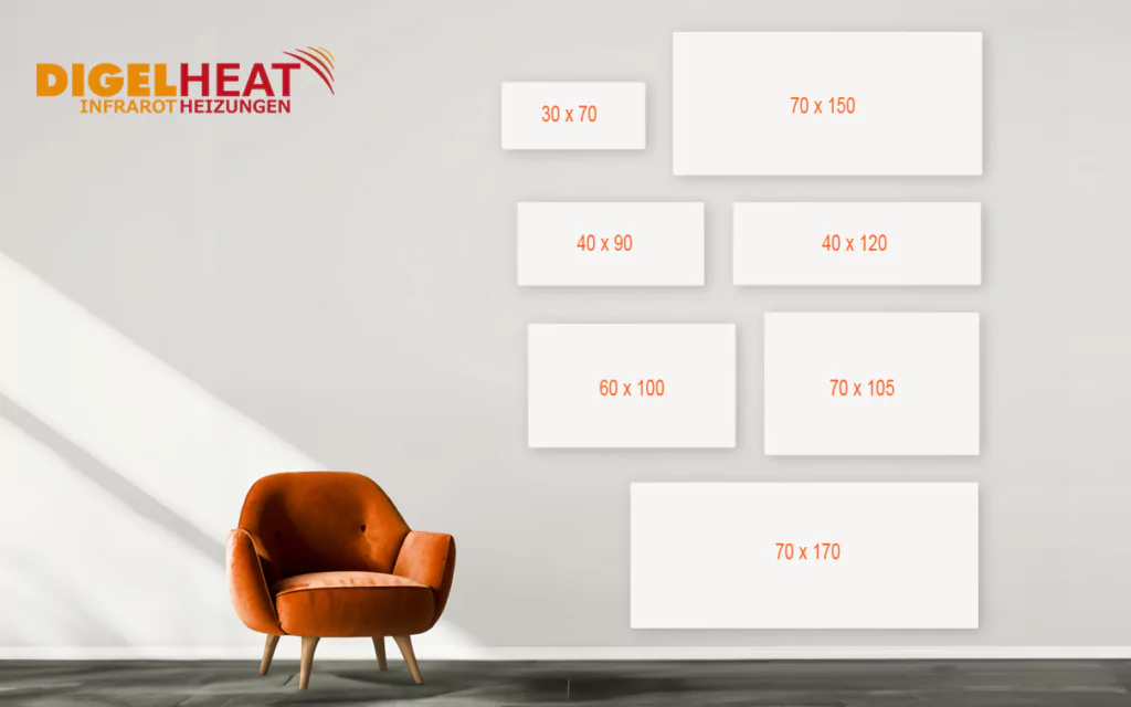 Die Infrarot-Heizungen werden in verschiedenen Größen hergestellt. So können für jede Raumsituation die passenden Größen zusammengestellt werden.